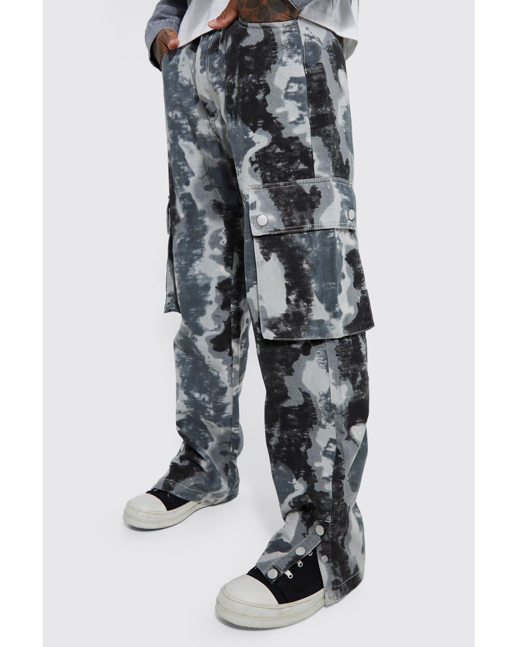 Boohooman Fixed Relaxed Camo Cargo Popper Hem Trouser In Black For Men Lyst Uk