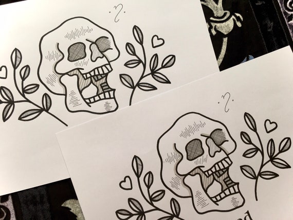 Traditional Tattoo Print Skull Design Print Linework Print Etsy